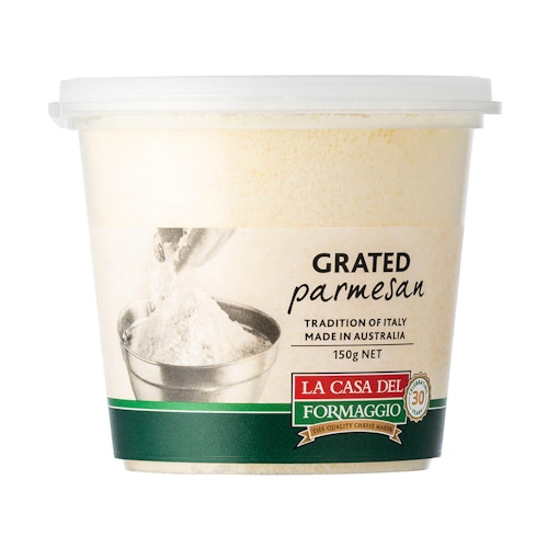 La Casa Del Formaggio Grated Parmesan is based on the taste profile of ‘Parmigiano-Reggiano’ which is a hard, fat granular cheese, cooked but not pressed. La Casa Del Formaggio pre grates this parmesan for your convenience.