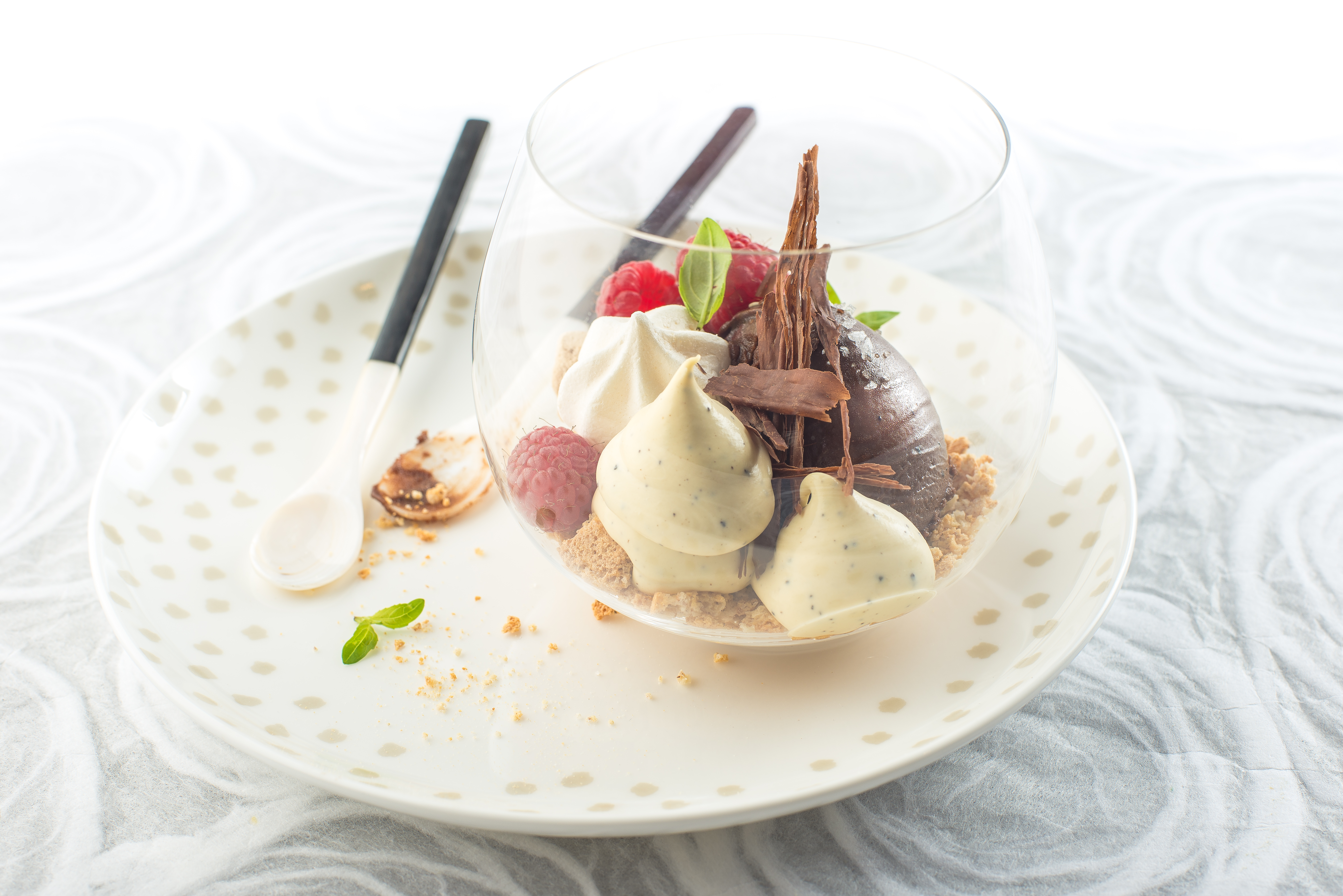 | 4 | Using a warm dry dessert spoon, scoop the chocolate mousse and place in the base of the glass. |