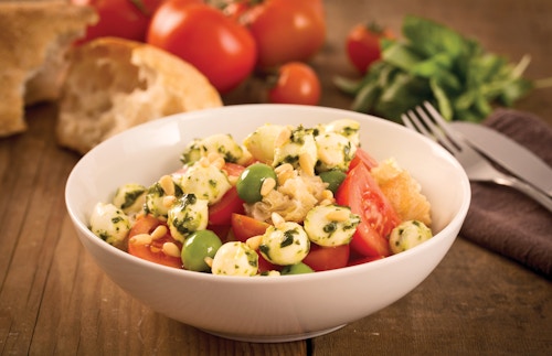 | 4 | Combine the tomatoes in a bowl with crushed garlic, salt & pepper, a dash of olive oil and the Bambini Bocconcini. Toss to coat. |
